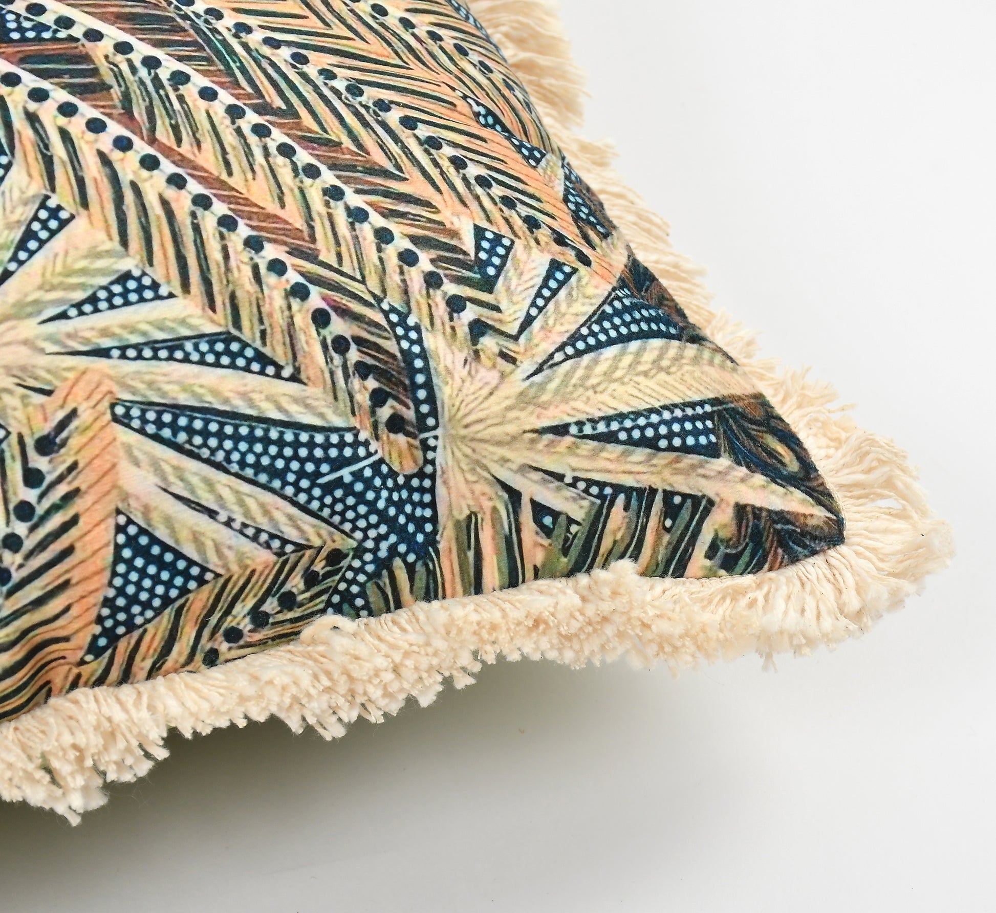 Ideal for eclectic homes, boho living rooms, or modern nature-inspired interiors, this cushion invites a touch of nature’s opulence indoors. The artisanal vibe is perfect for spaces that embrace storytelling through textiles.