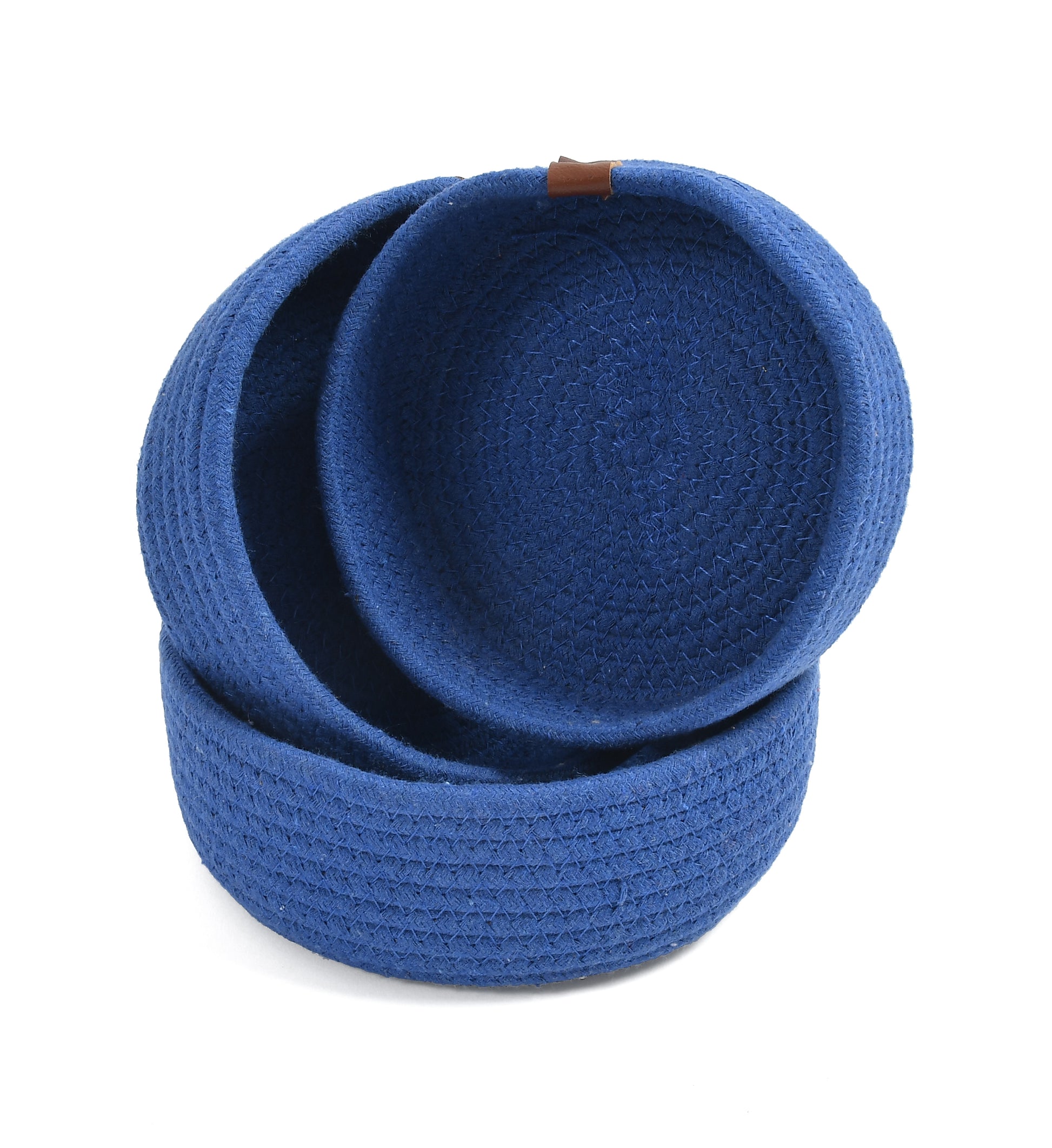 Crafted in calming hues of navy and grey, our Storm Haze baskets evoke the quiet beauty of a drifting monsoon sky. Thoughtfully handwoven by artisans in India, these versatile catch-alls are perfect for storing everything from bathroom essentials to entryway trinkets. Compact yet sturdy, they add organic texture to any surface — bedside, kitchen, or desk. Style them solo or as a set to bring subtle pattern and function into your daily rhythm.